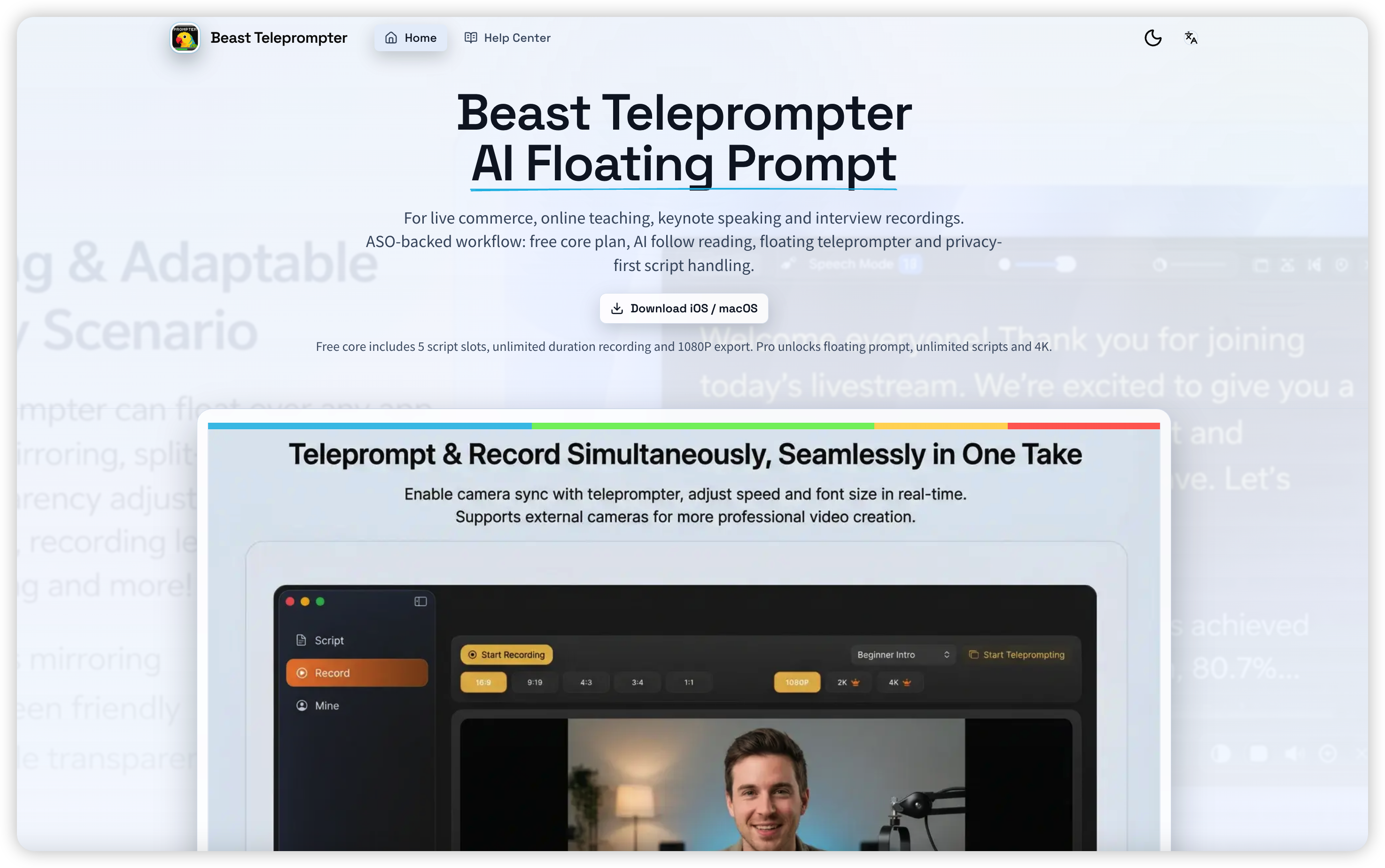 Best For: Serious content creators, YouTubers, educators, and anyone who values a professional, intelligent teleprompting experience.