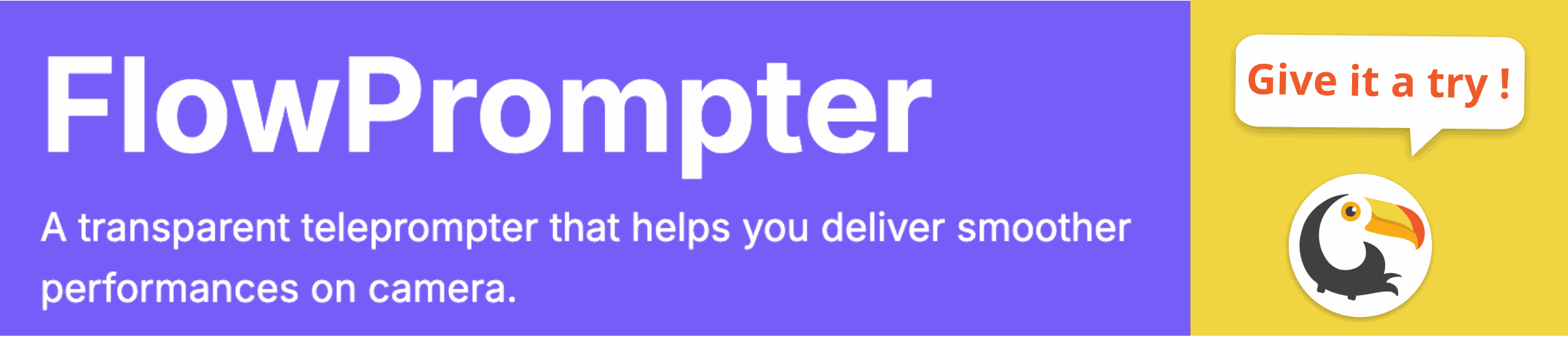FlowPrompter: A transparent online teleprompter that helps you deliver smoother performances on camera. A versatile tool that integrates seamlessly with various devices, offering customizable display options and remote control features for enhanced usability.